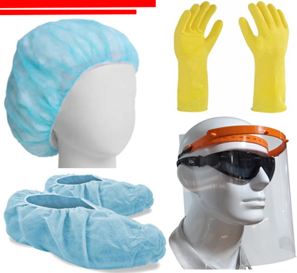 Tenemos Gorros y cubre zapatos, Guantes de caño corto y caño largo de Latex y botas de goma color blanco especial para hospitales y clínicas. Protector Facial de industria nacional que es utilizado en las empresas industriales.Protejamos a nuestros trabajadores ante el COVID 19.