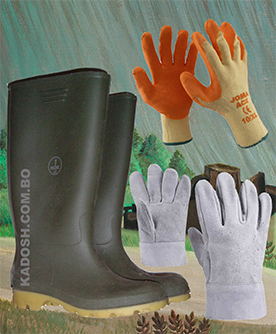 Botas de goma de caño largo con punta de acero, plantilla antideslizantes. Tenemos en color blanco y negro. Diferentes clases de guantes, guantes de vaqueta, de propileno.